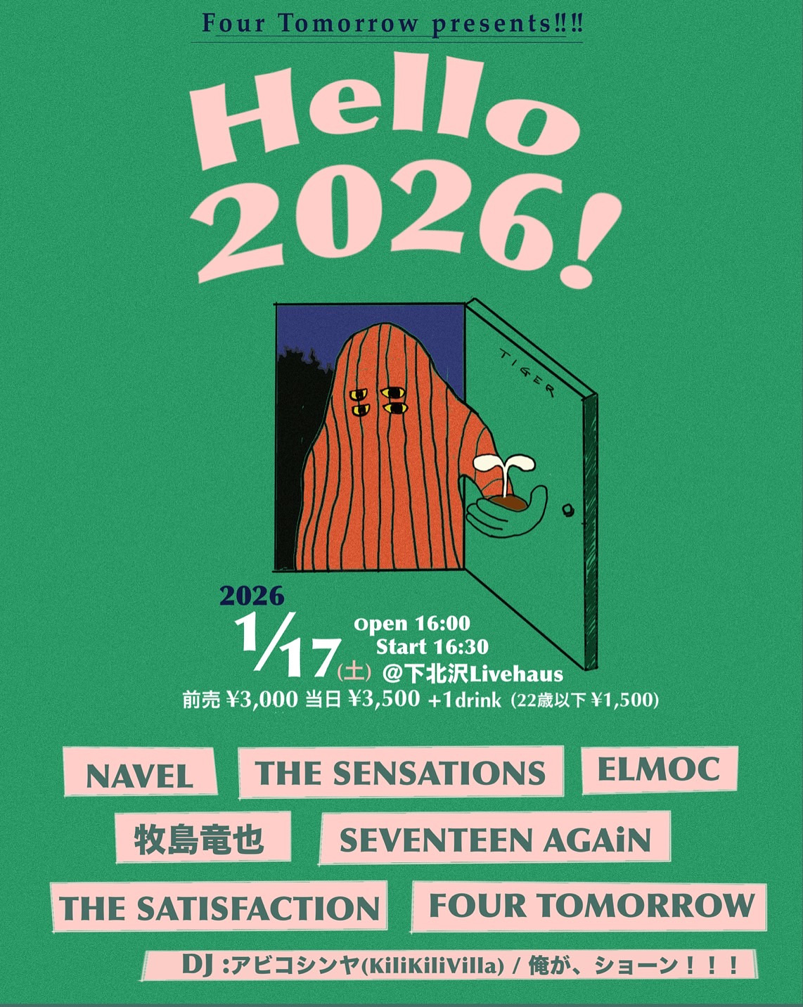 | NEW | SHOW | DISCO | FOUR TOMORROW | CONTACT | 日々徒然 | #343 -20260117 Tokyo Shimokitazawa LIVEHAUS FOUR TOMORROW presents [Hello 2026!] w/NAVEL. THE SENSATIONS. ELMOC. 牧島竜也. SEVENTEEN AGAiN. THE SATISFACTION. DJ アビコシンヤ. 俺が、ショーン!. SUBURBIA WORKS #342 -20251213 Tokyo Shimokitazawa THREE TLOP and Hanamatsu presents [Willing to roll] w/Two Layers of paint. The Drags. SUPERNOW. DEAD STOCK. shipyards. #341 -20251122 Tokyo Shinjyuku NINE SPICES THE LOST BOYS presents [PET SYMMETRY Japan Tour 2025] w/PET SYMMETRY(US). What goes up. #340 -20251115 Tokyo Nishiogikubo FLAT かつのちから presents [かつのちから] w/does it float. Nogio Angel & The Ska'n'Pin Bon Bons. OMOHIDE-KYO. What goes up. #340 -20251102 Kanagawa Yokohama MUSIC BAR JOURNEY Lazy man records presents [HIT THE BOTTLE] w/MODERN GOOD DAYS. Hi-Gi. Li:vers. SHORT STORY. 60' WHALES. #339 -20251012 Tokyo Hachioji MATCH BOX/RIPS/RINKY 8st... BREAK A SCHOOL presents [MATSURI 2025] w/Many Bands! #338 -20250923 Tokyo Shimokitazawa THREE AxSxA presents [PING!PONG!!PUNK!!! #98] w/でぶコーネリアスEX. MANGA SHOCK. FEWWW. T.V. not January. Salsa. Essential #337 -20250802 Tokyo Shimokitazawa LIVE HAUS FOUR TOMORROW presents [August die She must?] [Homeward Bound Tour Final] w/bulbs of passion. does it float. SNAP PUNCH MOMENT. Overloded. LIFE IS WATER BAND.LINK. OUT OF STYLe. DJアビコシンヤ. なくもゆうしろう #336 -20250712 Aichi Nagoya DAYTRIVE ANGRY NERD presents [Homeward Bound Tour 2025-Aichi-] w/ANGRY NERD. Dr. SNUFKIN. fish. #335 -20250621 Hokkaido Sapporo PIGSTY SNAP PUNCH MOMENT presents [On Your Mark #4] [Homeward Bound Tour-Hokkaido-] w/Upstairs. カメレオン7. 右鉤拳撃(The Right Hook). cute as a button. DON KARNAGE. Is Survived By. MAPPY. MODERN GOODDAYS. Pampas Fields Noise Found art. PEACE OUT!. SUPERNOW. Two layers of paint. THE WORLD PEACE. VIEWMORE. TWO-nothing. ザ•ノロノロズ. SNAP PUNCH MOMENT. #334 -20250518 Fukuoka Tenjin Kieth Flack BREAK A SCHOOL presents [Homeward Bound Tour-Fukuoka-] w/DENOMI. futurina. JIM ABBOTT. The Shrikes. sniff. #333 -20250517 Osaka Nanba BEARS BREAK A SCHOOL presents [Homeward Bound Tour-Osaka-] w/CROW DRAGON TEA. NAVEL. What Goes Up. WHITE SURF! #332 -20250406 Tokyo Hachioji RIPS COQUETTISH presents [MORNING GROLY] w/COQUETTISH. ROLLINGS. CRAZY CHAMELEON. #331 -20250405 Tokyo Shimokitazawa Live Haus FOUR TOMORROW presents [Homeward Bound Tour 2025] "April come She will -4月になれば彼女は-" w/ANGRY NERD(名古屋)cute as a button(北海道) ピーナッズ. MORETHAN. yellow gang. ZERO FAST DJ:アビコシンヤ(KiliKiliVilla) #330 -20250202 Tokyo Shimokitazawa Basement Bar FEWWW presents [NOT BLACK release party!] w/FEWWW. DEV CORNELIUS EX. LIFE IS WATER BAND. STARVINGMAN. #329 -20241207 Aichi Nagoya DAYTRIVE ANGRY NERD presents [Homeward Bound release party!] w/ANGRY NERD. does it float. BEAGLE. Killerpass. Crows Caw Loudly. #328 -20241201 Tokyo Hachioji MATCH BOX MATCH BOX 20th Anniversary presents [FRIEN IS THE TREASURE] w/ELMOC. MUGWUMPS. PELOTAN. 60's WHALES. yokoThema. #327 -20241103 Tokyo Machida Nutty's COOLER KING McQUEEN presents [COOL or FOOL? #54] w/COOLER KING McQUEEN. FROTRIP. LINK. #326 -20241101 Tokyo Shimokitazawa SHELTER KiliKiliVilla presents [Jeff Rosenstock Japan Tour 2024] w/Jeff Rosenstock(US). MEGA X. #325 -20241014 Tokyo Shimokitazawa ERA & Rinky Dink でぶコーネリアスEX presents [DEVLIMPIC 秋 2024] w/many bands(more than 30 bands!) #324 -20241013 Tokyo Hachioji MATCH BOX / RIPS / PAPABEAT / RDS8 BREAK A SCHOOL presents [MATSURI 2024] w/many bands(total 48 bands!) #323 -20241005 Miyagi Sendai BARTAKE BOODLE presents [ZATSU FESTIVAL] w/for sibyl. upstairs. ピーナッズ. Little Factories. BOODLE #322 -20240907 Tokyo Shinjyuku Red Cloth SET YOU FREE presents [CHiXDiGGiT! JAPAN TOUR 2024] w/CHiXDiGGiT!(Canada). KiNGONS.